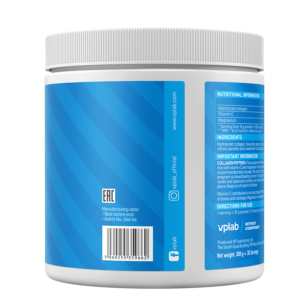 Vplab's Collagen Peptides is a scientifically formulated supplement that combines highly bioavailable hydrolyzed collagen peptides with vitamin C and magnesium. This blend is designed to support the health of bones, ligaments, joints, and the nervous system, reduce tiredness and fatigue, and strengthen the immune system across 300g for 30 servings.